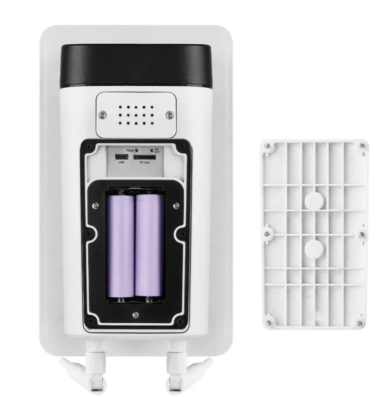 • Alimentation solaire 3,5W avec 4 batteries Li-ion 18650 (total 8800 mAh), autonomie longue durée et recharge via USB-C lors de la première installation.